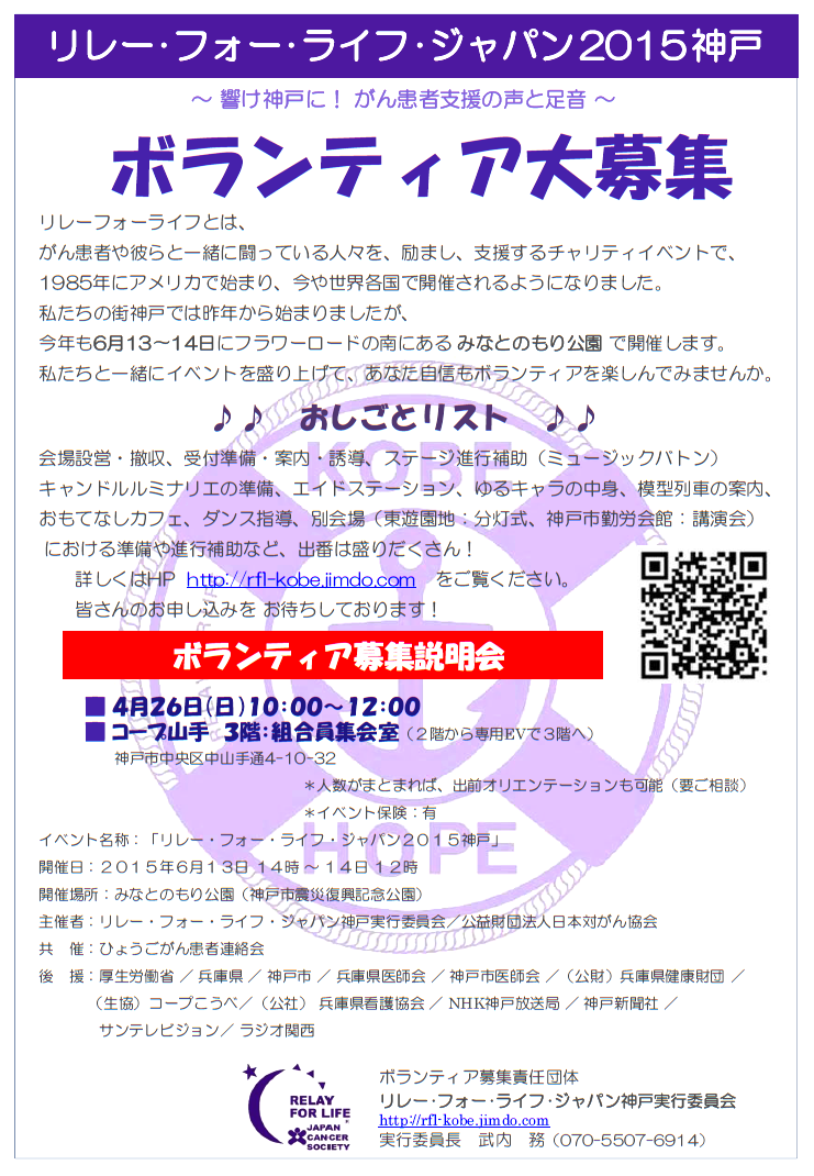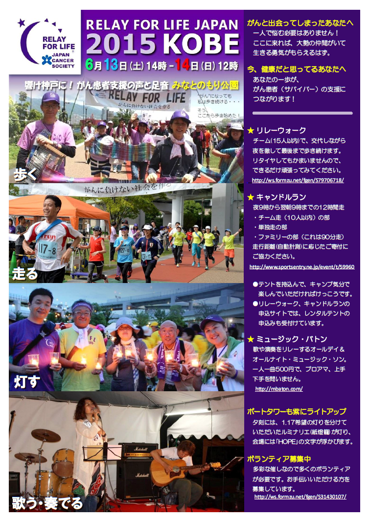 | 「リレー・フォー・ライフ・ジャパン2015神戸」を終えて | ||||
