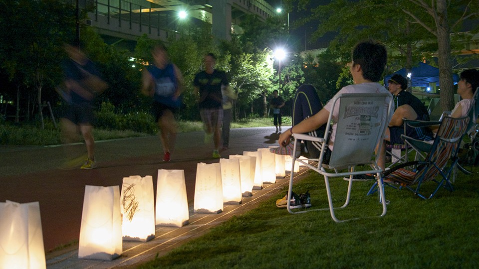 このような新しい試みは、ほぼうまく行ったと思うのですが、 来年以降の課題といえば、キャンドランの盛り上がりに比して、本来のリレーウォークの参加者がまだまだ少なかったことでしょう。 全体の参加人数は、昨年同様、延べ1300人前後でした。収支はまとまり次第、追ってご報告させていただきます。 会場にお越しいただいた方の中には「参加するだけで、なにも手伝えなくてごめん」と言ってくださる人も多いのですが、私はそうは思っていません。 参加していただくことこそが、何物にも代えがたい、最大のご協力だと思っています。 参加していただいた皆さん、頼りない私を支え共に汗を流していただいたスタッフの皆さん、身を挺して手伝っていただいたボランティアの皆さん、ほんとうにありがとうございました! そして、さまざまな形でご協力をいただいた関係者の皆さまにも、心より感謝を申し上げます。 日々、命をみつめて生きる一人のサバイバーとしても、最後にもう一度、皆さまの温かいお気持に「ありがとう!」と言わせてください。 来年もまたこの会場(みなとのもり公園)でお会いしましょう! リレー・フォー・ライフ・ジャパン神戸実行委員会 実行委員長 武内 務 |