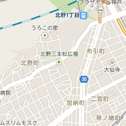 三宮(JR、阪急、阪神各駅)からフラワーロードを南へ15分弱。